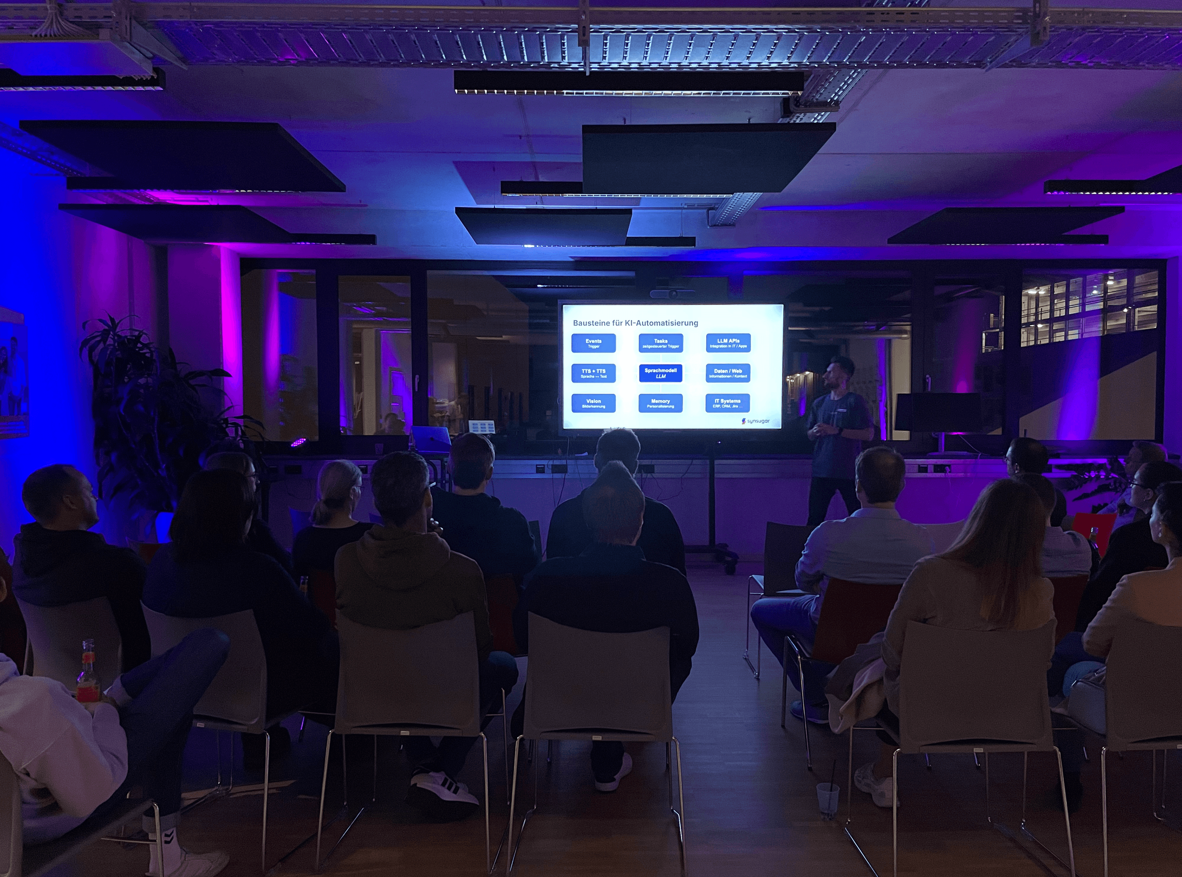 Am 26. März 2025 haben wir unser zweites eigenes Event im INN.Kubator, unserem Bürogebäude in Passau mit einer Vielzahl geschätzter Kollegen, Partner und Freunden gehostet. Da der Frühling schon im Anmarsch ist, haben wir beschlossen, unser Event unter dem Motto "AI Spring Break" zu feiern - inklusive leckerem italienischem Essen und unserem eigens kreierten Cocktail, dem synsugar Spritz, den alle an unserer Bar probieren konnten. Schnell füllte sich der Raum mit angeregten Gesprächen, Gelächter und Lounge-Musik im Hintergrund - good vibes only!