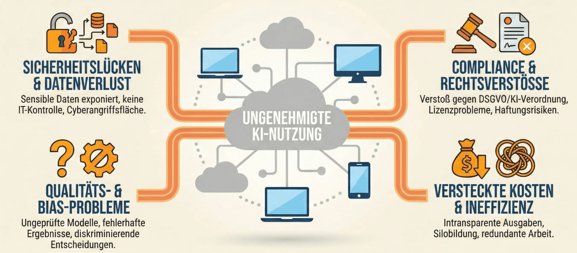 Erfahre, mit welchen Risiken Schatten-KI im Unternehmen verbunden ist und was Du tun kannst, um diese Risiken zu minimieren.